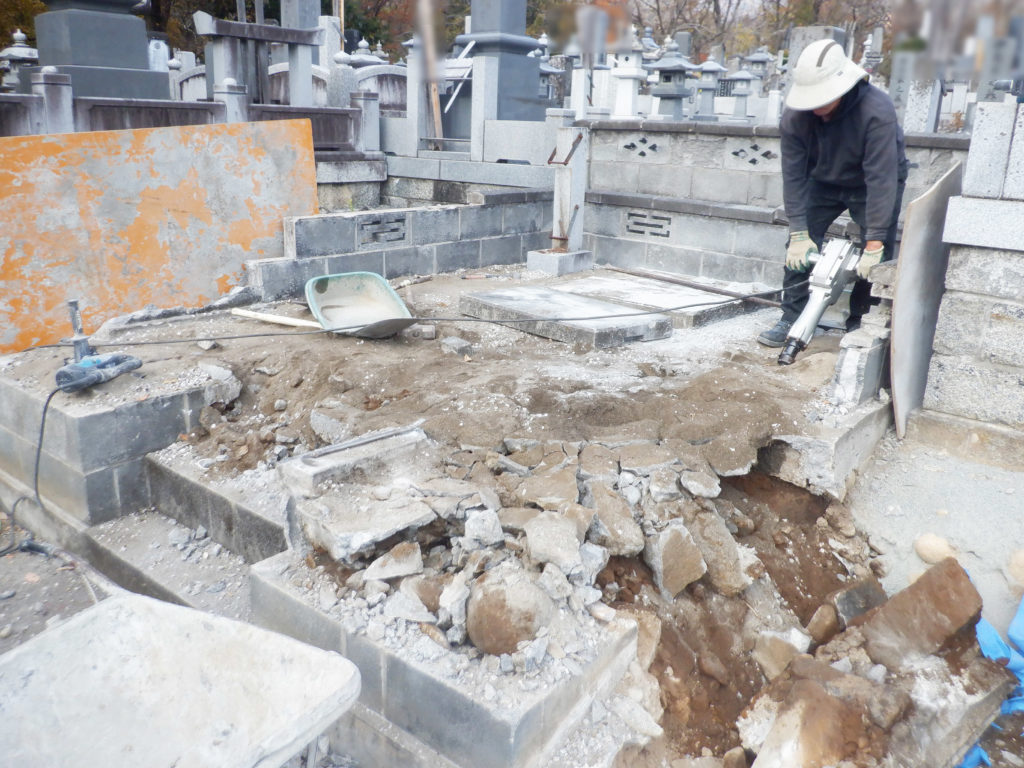 甲州市牧丘町墓地にてのお墓の取り壊しを行いました。