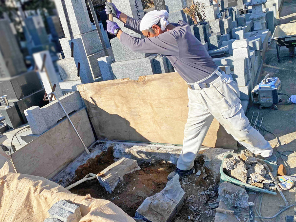 ・取り壊し:下石、積立、コーピン、柱、玉垣、納骨堂基礎 お墓1基、塔婆立、基礎コンクリート